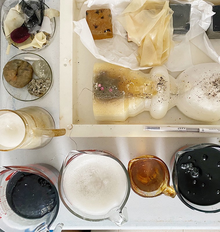 Minhas obras são filhas do calor, da umidade. Falam de um estado interno, um barulho interior, enquanto o silêncio se apresenta. Elas sussurram os absurdos de nossa era paradoxal e ambígua. Me interessa a noção de incompletude, a incerteza, e nossa percepção leitosa da realidade. Ali onde nem tudo é visto, mas está - ou esteve. O raciocínio parece sempre partir do processo da fotografia analógica. É químico, é limite. Fisicamente, o mesmo espectro UV que utilizei, continuará a atuar sobre a obra de arte.