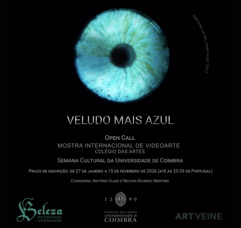 Veludo Mais Azul é um dos projetos vencedores da XXVIII Semana Cultural da Universidade de Coimbra, cuja temática, em 2026, é a Beleza, na sua dimensão plural. Situado no campo das artes visuais contemporâneas, Veludo Mais Azul, com curadoria de António Olaio e Nelson Ricardo Martins, concretiza-se através de uma mostra internacional de videoarte, com artistas escolhidos através de um Open Call, que se desdobra numa exposição virtual na plataforma ART VEINE (www.artveine.com), parceira do projeto.