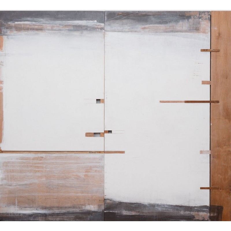 | Especificações Técnicas / Technical Specifications | Acríliica e ripas sobre madeira recortada. |
