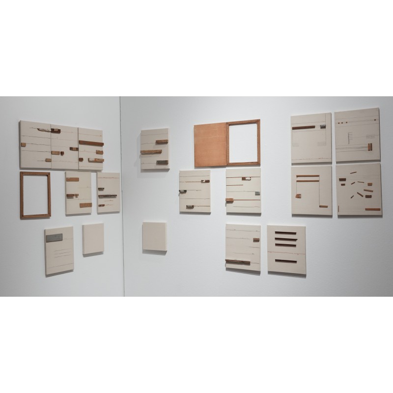 Série desenhos e ripas sobre tela