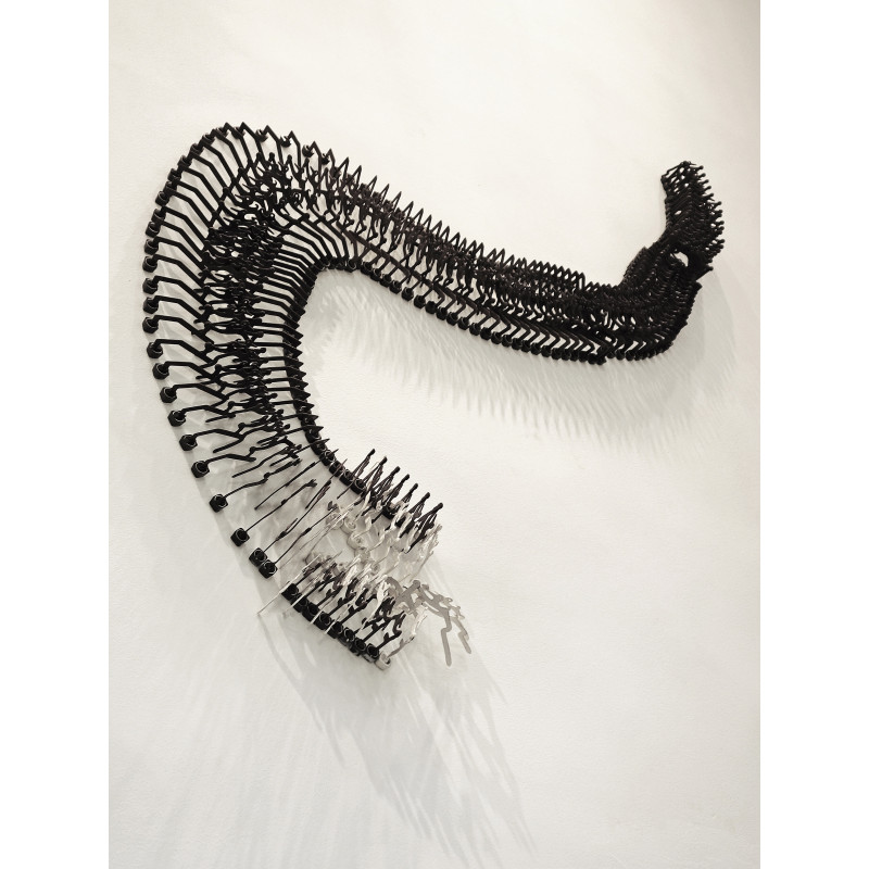 " Não poderia imaginar a pandemia que nos atinge. Mas no campo da arte os trabalhos funcionam acumulando sempre novos significados. Dentro dessa lógica que aliás, é própria da linguagem, os Vírus continuam a resultar da desconstrução de obsoletas máquinas de escrever. Durante meu isolamento social, são reconstruídas incessantemente em diversas versões de esculturas. Suas teclas abandonam a função de levar a letra ao papel e passam a constituir elas próprias uma espécie de escrita assêmica tridimensional.