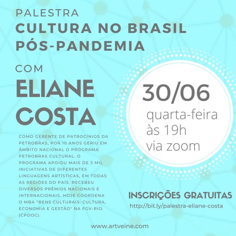Eliane Costa é Doutora em História das Ciências, das Técnicas e Epistemologias pela UFRJ/HCTE, com pesquisa sobre Territórios e Cibercultura. Mestra em Bens Culturais e Projetos Sociais pela Escola de Ciências Sociais da FGV (CPDOC). Pesquisadora associada do PACC (Programa Avançado de Cultura Contemporânea) da UFRJ. De 2003 a 2012, foi Gerente de Patrocínios da Petrobras, coordenando o edital nacional de seleção pública de projetos. Em maio de 2012, ao aposentar-se da empresa, passou a atuar como consultora independente, palestrante e professora nas áreas de Gestão Cultural e Cultura Digital. Desde então, coordena o MBA “Bens culturais: cultura, economia e gestão" na FGV-Rio. Autora do livro "Jangada Digital" (Ed. Azougue, 2011) e organizadora, com Gabi Agustini, da coletânea "De baixo para cima" (Ed. Aeroplano), ambos disponíveis na rede para compartilhamento e download sob licença Creative Commons. Formada em Física nos anos 70, possui pós-graduação stricto sensu em Engenharia de Sistemas (COPPE-RJ) e MBA Executivo em Comunicação (ESPM-RJ). Em 2009, recebeu o Prêmio Orilaxé Direitos Humanos, do Afroreggae. Em 2012, o Prêmio ANU, da Central Única das Favelas (CUFA) e o grau de Chevalier dans l'ordre des Arts et des Lettres, conferido pelo Ministério da Cultura e da Comunicação francês.