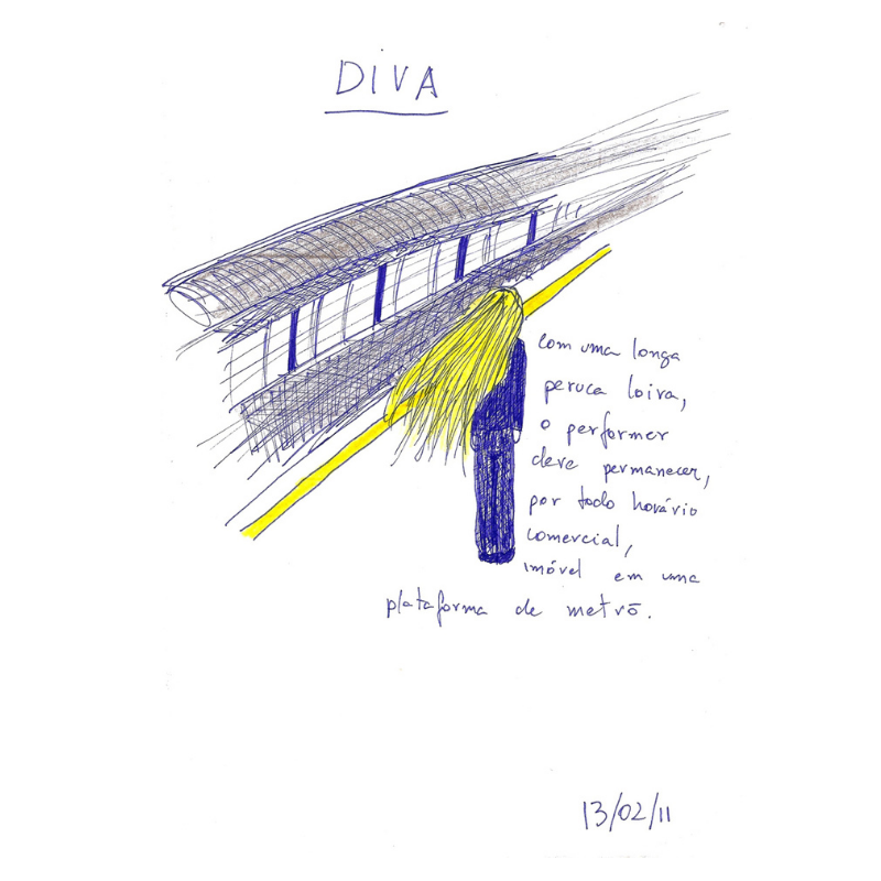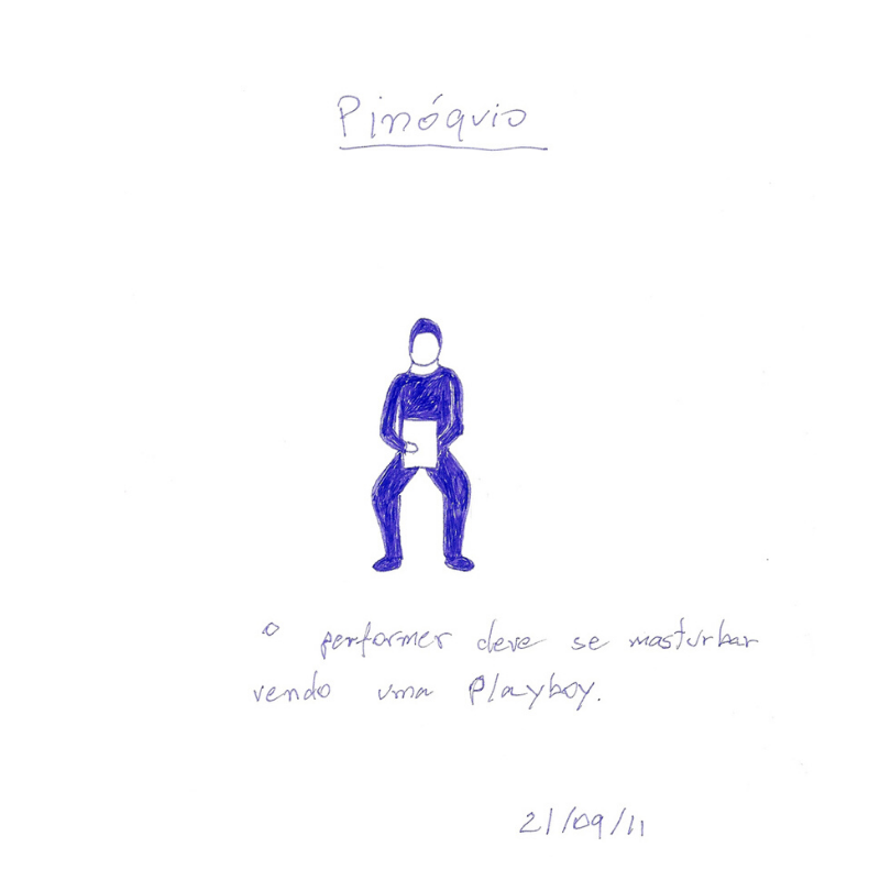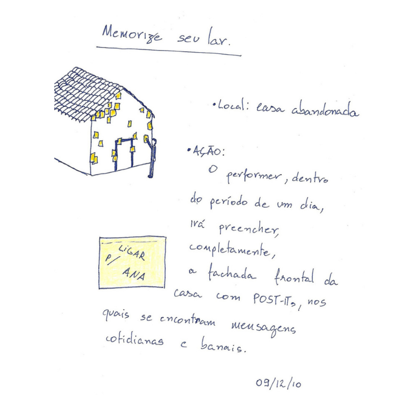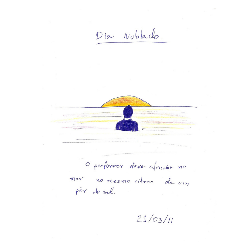 Este trabalho consiste em 365 desenhos de idéias de performance realizados um por dia, durante um ano, iniciado no dia 08 de dezembro de 2010. Sendo o ato de desenhar a performance em si, não realizei, de fato, nenhuma das propostas. O projeto acabou tronando-se expansivo, o que colocou em questão fatores como sua autoria e formato no momento em que outras pessoas resolveram realizar algumas e, também, por ter sido exposto emoldurado no paço das Artes em 2013 além de publicado em formato de livro pela editora N Versus.