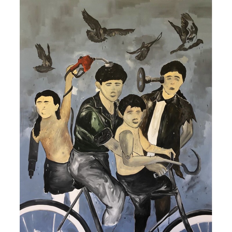 Acrílica, óleo e massa corrida sobre lona