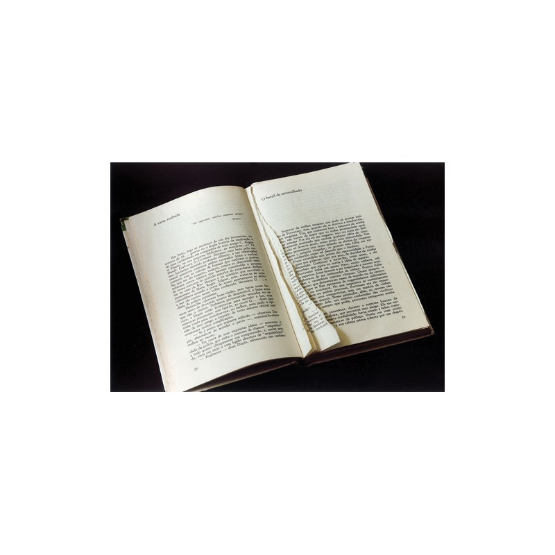 Livro de Edgar Allan Poe com o conto A carta roubada arrancado e escondido entre suas páginas.