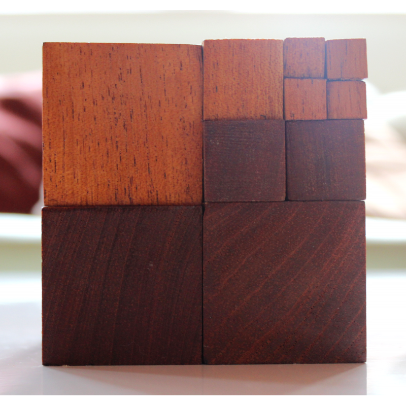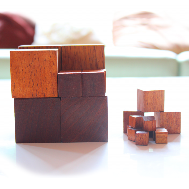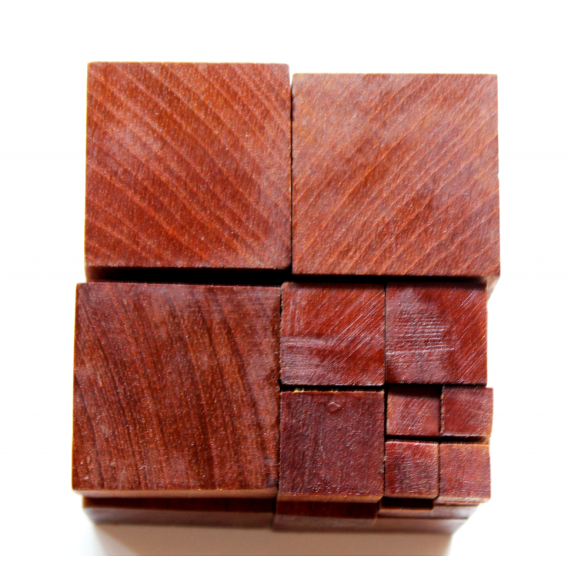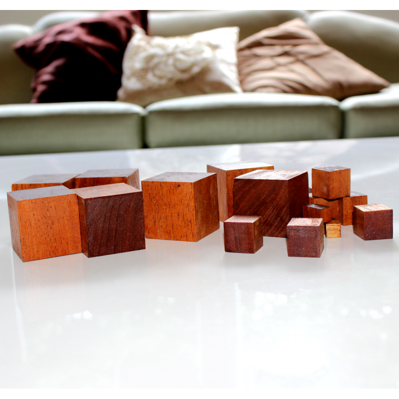 Madeira serrada em cubos.