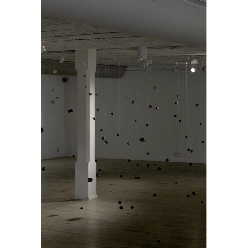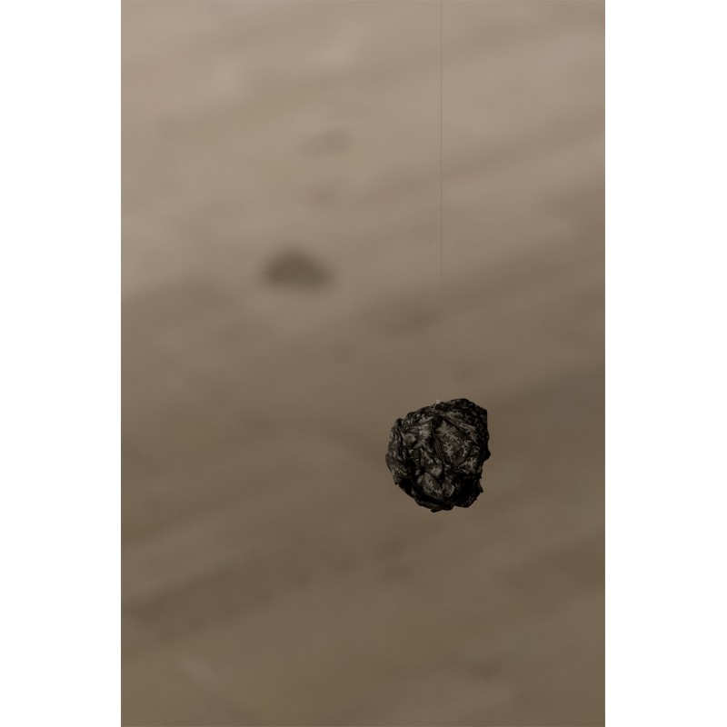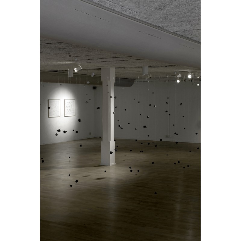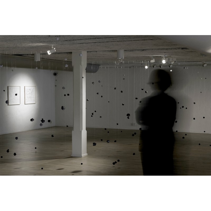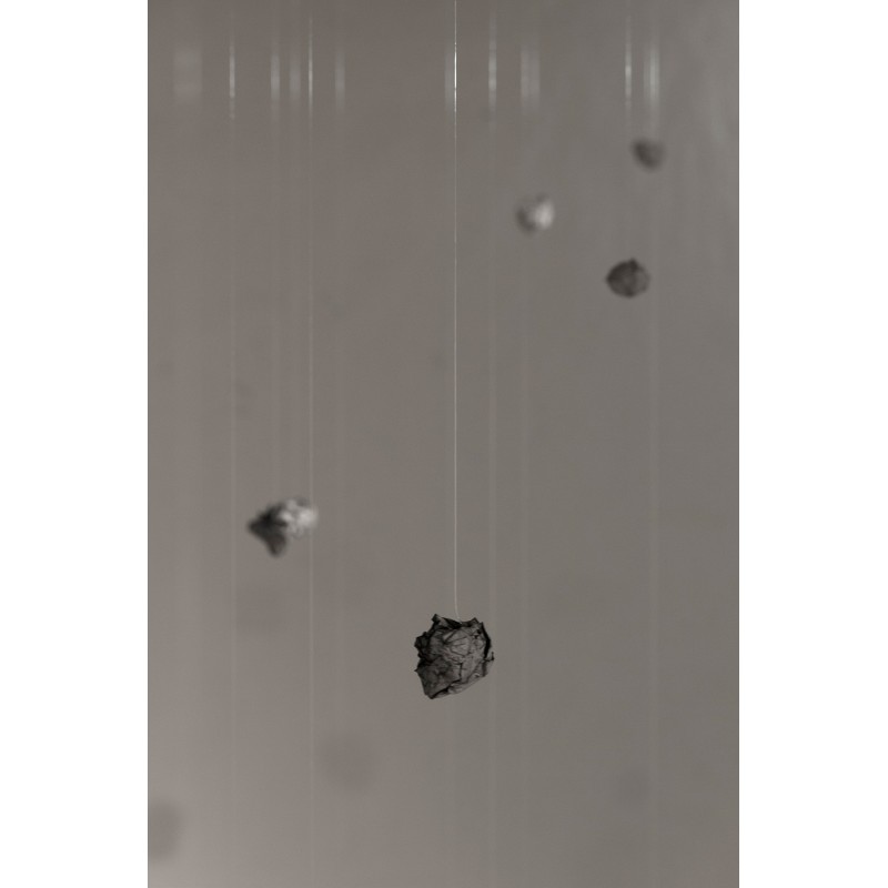 tinta chinesa diluída em papel de escritório amassado, arame e pregos (detalhe da instalação em Sjöbo Konsthall, Sjöbo, Suécia, 2014)