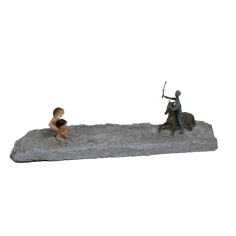Brinquedos de plástico. Pintura com minerais e argamassa de cimento.